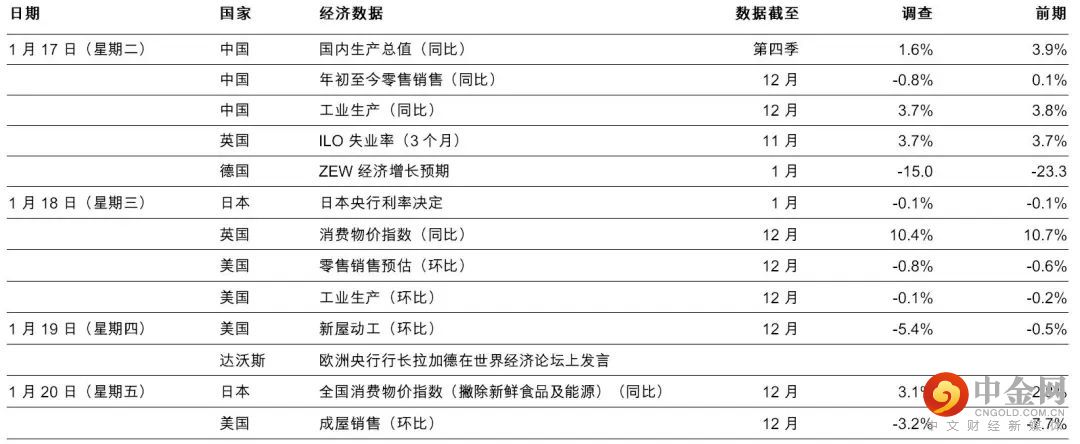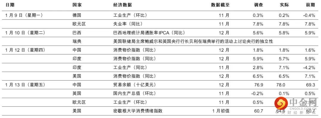 欧洲方面,德国11月份工业生产增加0.2%(环比),低于预期的0.3%(环比)。数字部分扭转10月份经向下修订的收缩0.4%。工业生产仍低于疫情前的水平,但数据反映德国经济大致稳健。英国11月份国内生产总值高于预期(升环比0.1%),有别于预期的跌0.2%(环比),10月份为升0.5%(环比)。数字录得升幅,虽然采购经理指数疲弱、房地产市场放缓及生活成本持续带来挑战,但月内世界杯相关开支,及扭转上调入息税有助提振服务业活动。