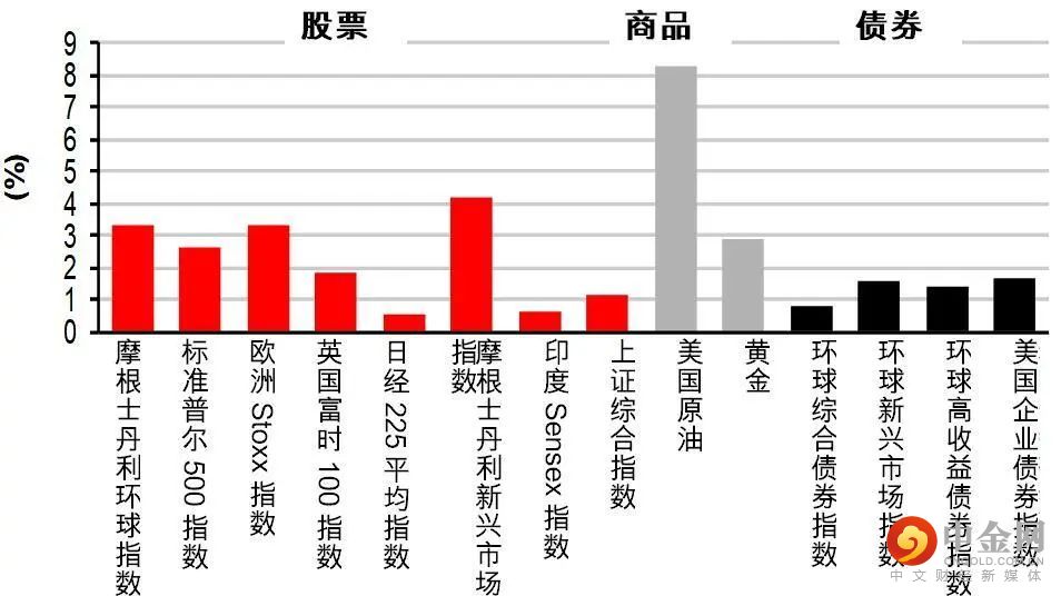 欧洲债券亦向上,受通胀前景降温的乐观气氛推动。基准的德国十年期政府债券息率跌4个基点至2.17%;风险承受能力有改善,也带动非核心债券表现领先(意大利十年期政府债券息率跌21个基点至4.00%)。
