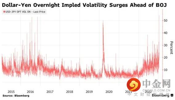 该货币对的隔夜隐含波动率跃升至2008年11月以来的最高水平,因交易员准备迎接继去年12月日本央行意外调整政策后的又一次政策调整。自从日本央行上月提高了其收益率曲线控制计划的上限以来,交易员已经连续三天将10年期债券收益率推高至上限以上,从而加大了对日本央行的压力。