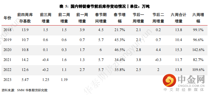 由于一季度属于锌消费的传统淡季,且春节期间下游镀锌、锌合金等加工企业及终端企业普遍放假2周左右,导致下游提货偏少,但期间锌锭冶炼企业是处于连续生产的状态,加上多数地区春节前后物流减少,使得国内锌锭春节前后累库特征较为明显。