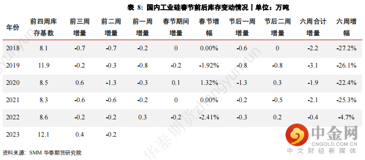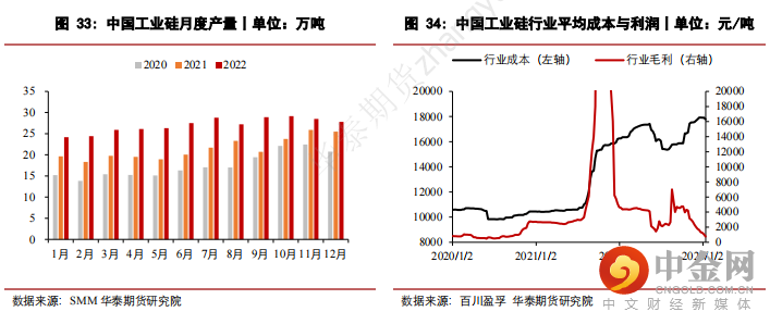 从利润端来看,据百川盈孚统计,目前行业平均利润在1000元/吨附近,四川地区基本无利润,云南地区小于1000元/吨,新疆地区在2500元/吨。按照目前成本利润及西南电力情况,预计春节期间云南及四川仍会减产,但新疆地区随着新产能投产及原有产能提产,产量将保持增加,1月份产量与2022年12月基本持平,消费端多晶硅仍将增产,有机硅基本持平,其他小幅降低。综合来看,预计2023年春节前后工业硅去库幅度在1.0万吨左右,去库幅度较去年同期有所增加。