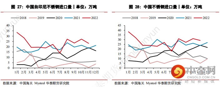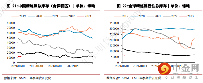 由于2023年1月份镍价大幅下挫,加之下游多处于低库存状态,春节假期临近存在备库需求,镍价急挫之后下游陆续进行补库,而进口长时间处于亏损状态,国内现货资源暂不宽裕,预计2023年春节前精炼镍累库幅度较小。不过由于镍价整体上仍处于相对高位,对消费形成一定的抑制,春节期间消费亦处于停滞状态,节后可能仍会有小幅度的累库,但整体库存水平处于相对低位。