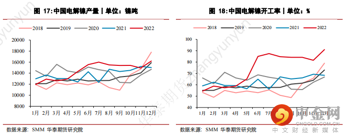 SMM数据显示,2022年12月份中国电解镍产量1.67万吨,同比增加10.9%,环比增加11.5%,SMM预计2023年1月份电解镍产量为1.47万吨,同比增加22.6%,环比下降12%。