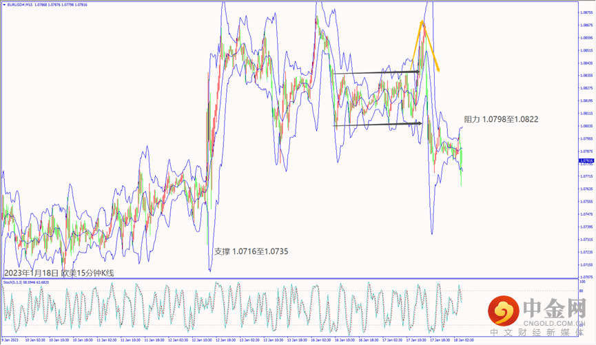 昨天(17日)欧洲央行考虑在2月加息后放缓,今天(18日)亚洲市场回补欧元带动欧美涨约16个点。预期今天日本央行利率决议维持宽松政策,可能利好美日上涨。预期今天美国公布PPI数据下降利淡加息,可能造成美元指数下跌。