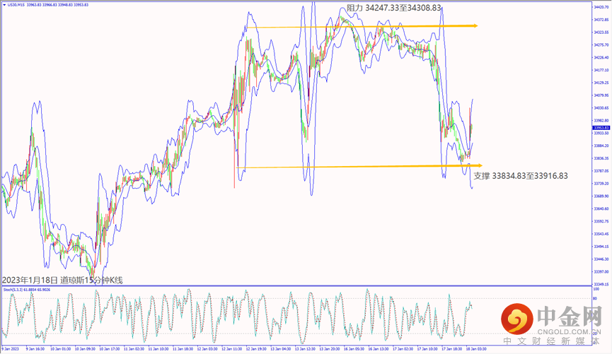 昨天(17日)美国制造业数据利淡,造成道琼斯和纳指皆跌近1%。预期今天(18日)欧元区公布CPI数据下降利淡加息,德指若守住小时布林带中轨15,193,建议可短多操作。预期今天美国公布PPI数据下降利淡加息,道琼斯若守住10日均线33,845,建议可短多操作。
