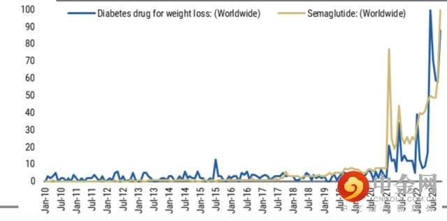 摩根士丹利认为,Wegovy(肥胖症用药)、Ozempic(降糖药)和semaglutide(减肥药物)正在TikTok短视视频及评论中被大量提及,将会带来针对肥胖症等一系列治疗领域的兴起: