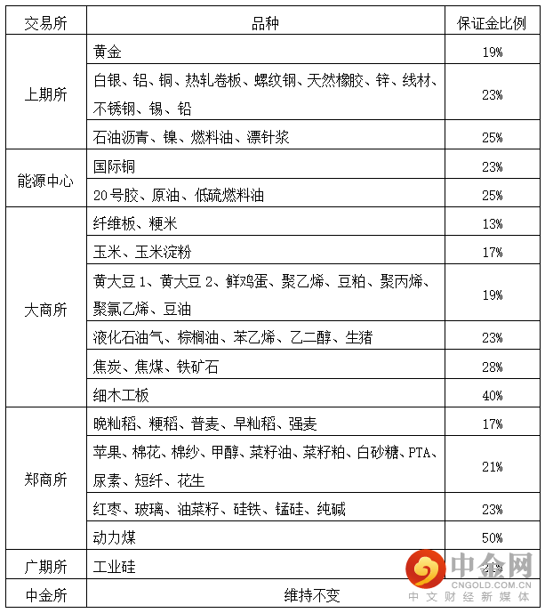 一、根据各交易所保证金调整方案,我公司定于1月18日(星期三)结算时起,将调整各期货合约保证金比例。具体调整标准如下: