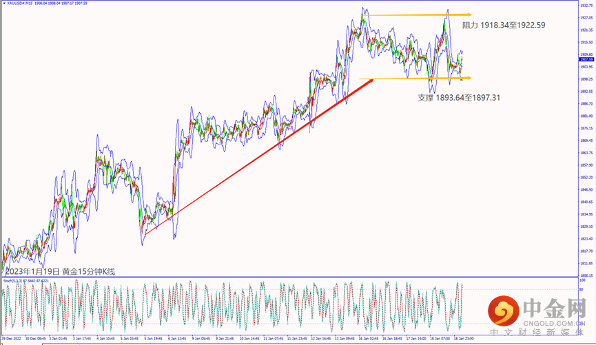 周三(18日)日本央行维持宽松利淡日元和利好美元,造成黄金价格回落至1900.00关口附近盘整。欧洲央行预期维持加息,以及美国经济数据利淡美元大跌,带动黄金价格涨近30美元。多位美联储官员预期持续加息利好美元涨近百点,也让黄金价格回落1905美元附近整理。