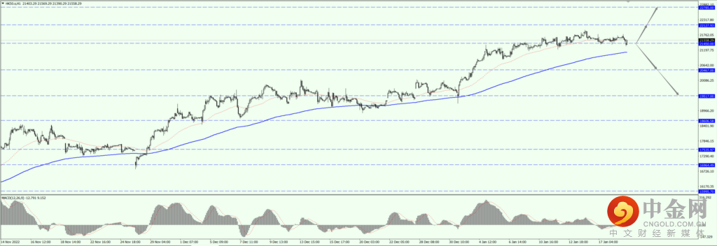 如果 HK50 运行于 21450 一线下方,届时关注 20467 和 19517 两个位置的支撑力度。