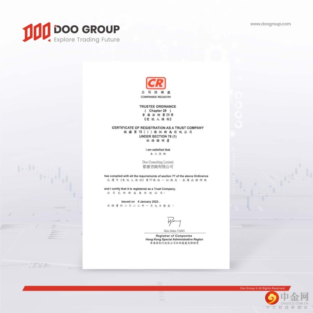 Doo Group 旗下品牌 Doo Wealth 的公司 Doo Consulting Limited(“Doo Consulting”)成功向香港公司注册处申请,根据《受托人条例》(香港法例第 29 章)注册成为信托公司,这是集团发展历程的重要里程碑。公司注册处是香港财经事务及库务局辖下的部门。