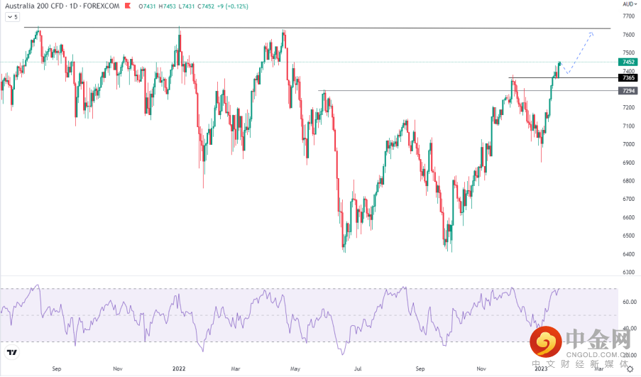 若指数能巩固7296-7365一带,将为后期冲击历史高点7647提供有力帮助。刚刚出炉的澳洲就业数据出现小幅放缓迹象,加息周期可能在上半年逐渐进入尾声,这是未来股市继续上涨的潜在动力。