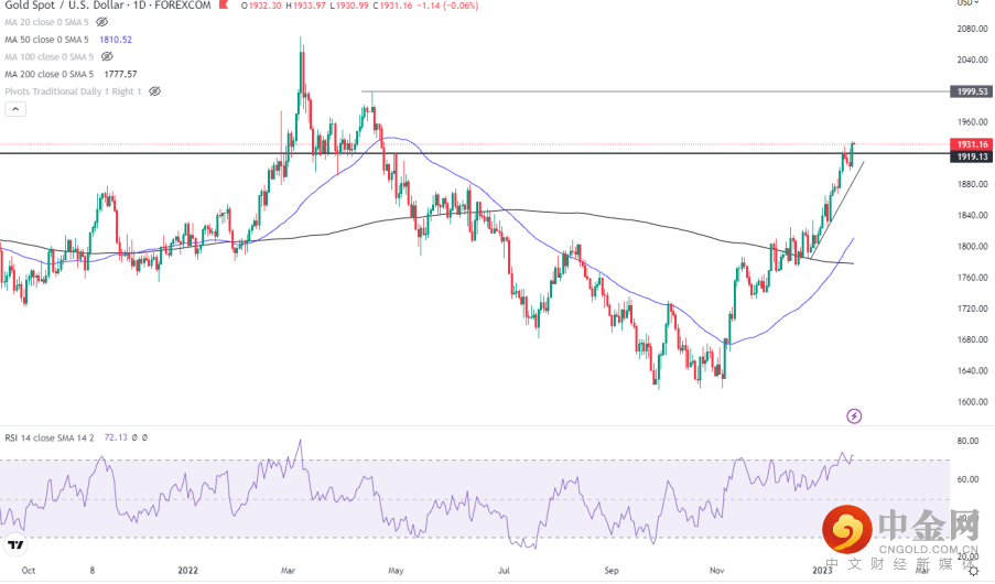 从11月以来金价已经从低点反弹了近20%。50天均线向上穿越200天均线后多头行情有望延续,宏观环境也利好于金价在2023年的表现。
