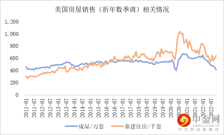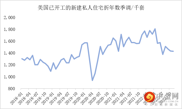 但从已开工的新建私人住宅数量来看,2022年4月之后,其开工数量还是出现了一定幅度的下跌。从2022年4月的180.5万套持续下跌到了2022年11月的142.7万套。