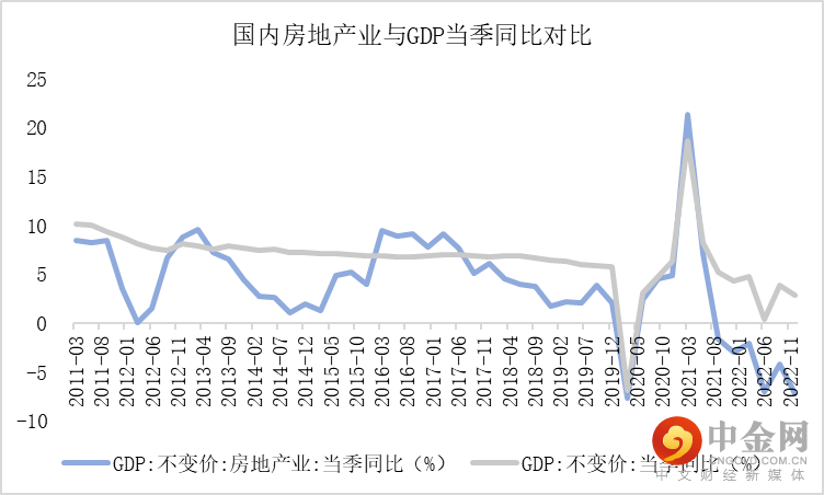 与之相比,国内2022年房地产业GDP也出现了下跌,2022年第四季度房地产业GDP为18466亿元。从增速来看,2021年第三季度以来,国内房地产不变价GDP(用某一时期同类产品的平均价格作为固定价格来计算各个时期的产品价值,消除价格变动的影响)当季同比一直为负,还远低于GDP当季同比。