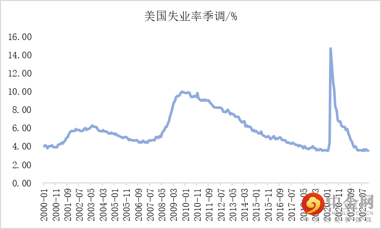 进一步从当时的季调失业率来看,2020年3月后美国的失业率也不容乐观。从2020年1月、2月的3.50%增至3月的4.40%后,2020年4月大幅上升至14.70%。