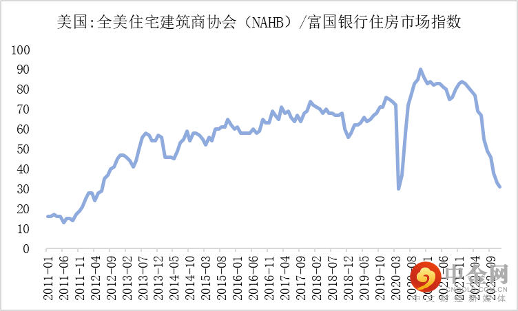 进一步从美国的全美住宅建筑商协会(NAHB)/富国银行住房市场指数对美国房地产形势进行观察。
