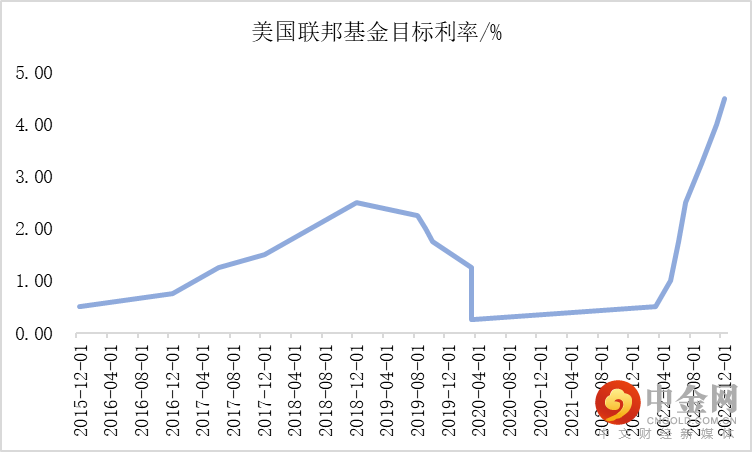 从美国联邦基金目标利率来看,2022年3月,该指标上升至0.5%,经过多次加息,2022年12月,该指标上升到了4.5%,为2008年以来的最高水平。