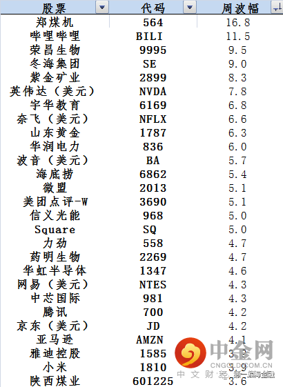 研讨会相关标的周涨幅榜