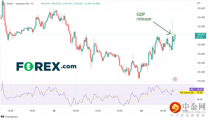 数据一发布,美元/日元从129.68蹿升至130.44。然而,市场利用反弹抛售使其又回到了130.00。