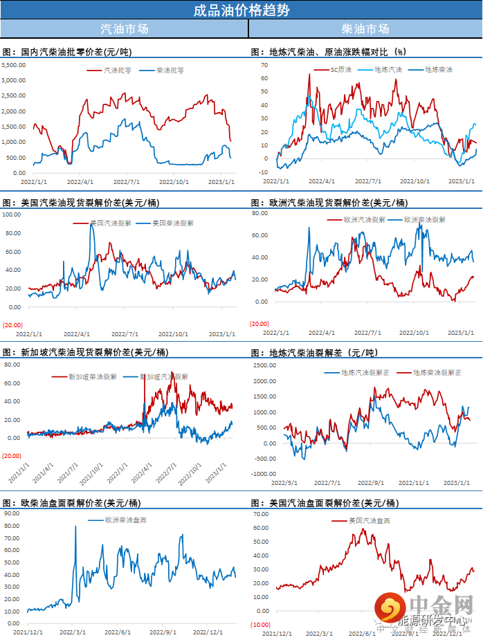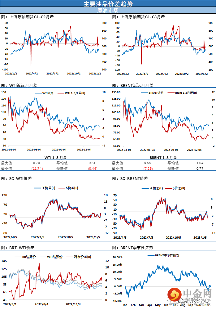 从原油市场自身来看2月份市场将关注欧盟实施进口禁令后对市场的影响,以及OPEC会议对产量的讨论,有消息称两名代表表示,欧佩克+联合部长级监督委员会(JMMC)不太可能在2月1日建议欧佩克+改变产量政策。虽然国内柴油顺利接棒汽油继续推动成品油市场强势拉升,但国内的乐观预期在春节假期后开盘没有给油价注入上行能量,周一报告中提及的调整成为了油价的主节奏,这也意味着春节前后这段时间多头在上档阻力争夺中再次遇挫,值得注意的是周一油价绝对价大跌同时,近端月差并没有明显走弱,这也预示着当前油价波动更多是反应的是投资者情绪层面变化。在大宗商品市场整体进入了冲高之后的调整阶段来挤压节前冲高泡沫,这也再次提醒投资者注意节奏的关键性,随着市场整体风险偏好降温,油价仍将维持低位区间内震荡蓄势。