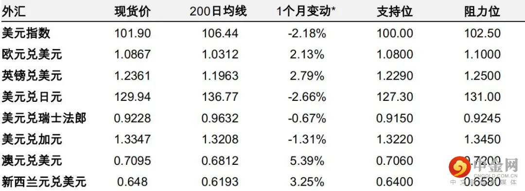 注:^美元指数是衡量美元兑全球主要货币(包括欧元、日元、英镑、加元、瑞典克朗和瑞士法郎)汇率的指数或指标。