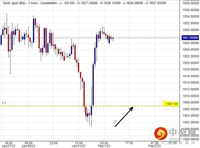可以部署在$1,907美元左右建立好仓盘,短线看高金价一线至$1,938美元水平后止赚,止损在$1,899美元。
