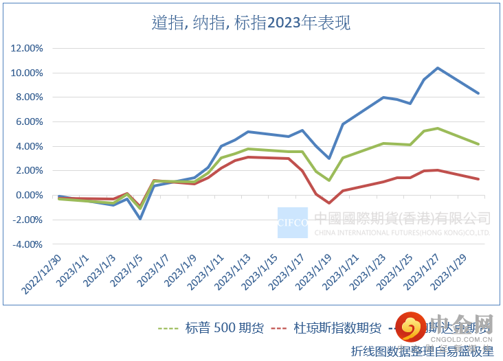 另一方面,预期未来一年美联储减息的机率亦升上44%,这都反映市场正作出后通胀时期部署,虽然周四多间大企业将公布业绩,但通胀问题才是重中之中,因此,市场将更关注周五亦有就业数据公布,该数据对2月份走势相当重要,除非数据过强,否则市场看好仍占上风。