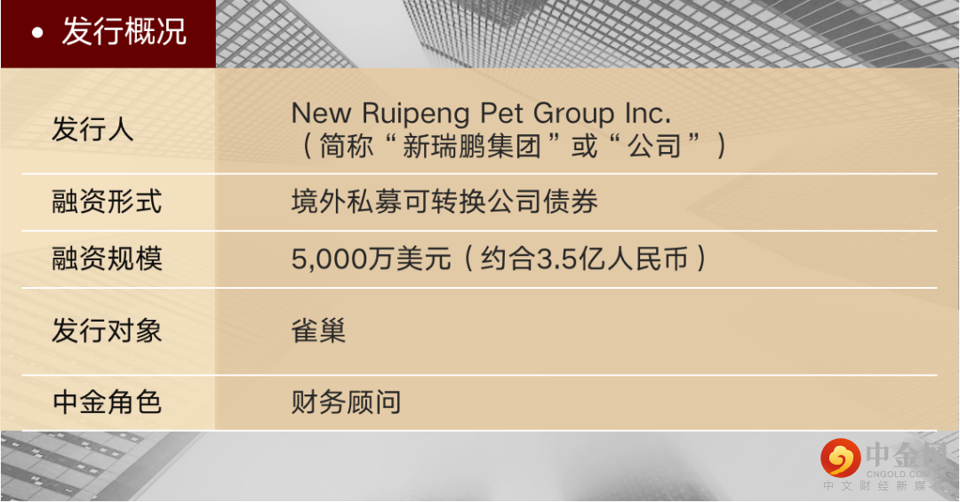 5,000万美元(约合3.5亿人民币),中金公司在本项目中担任新瑞鹏集团财务顾问。