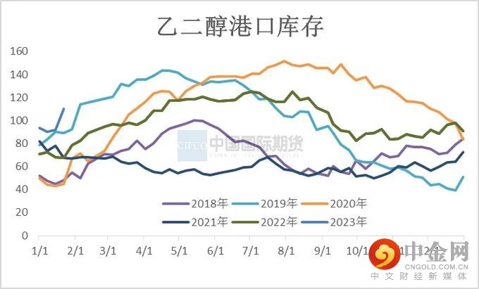 1月港口库存逐步回升,月底华东主港地区MEG港口库存约110.1万吨,较12月底港口库存90.8万吨增加19.3万吨。1月张家港主港月内日平均发货水平在 4620 吨附近。受春节假期影响,乙二醇港口提货量进一步下滑,同时由于港口到货量相对平稳,港口库存出现明显增加。1月显性库存预期内上升,春节假期期间零星出货,库存出现累积。