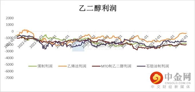 1月乙烯制乙二醇利润呈现明显好转,煤制乙二醇利润也相应回升。煤制乙二醇市场平均利润为-1998元/吨;甲醇制乙二醇市场毛利为-2030元/吨;乙烯制乙二醇平均利润为-615元/吨;石脑油制乙二醇利润为-1543元/吨。1月内乙二醇现货商谈价格持续走高,动力煤现货市场价格窄幅调整为主,乙二醇成本略有下降,受此影响煤制乙二醇生产利润出现较明显的修复。