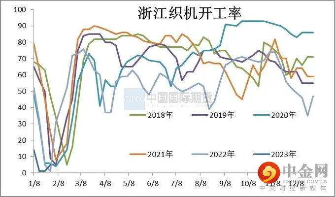 1月春节前多地消费市场停滞,终端需求疲软以及聚酯开工下滑。春节前江浙下游加弹仅存一些聚合配套的大厂还在正常开车运行,其余散户均停车放假;各地织造和印染全面放假。