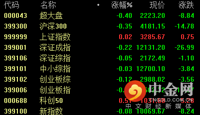 两市下跌个股略大于上涨家数,成交量方面连续第二个交易日破万亿。截止收盘,沪指涨0.02%,深成指跌0.22%,创业板指跌0.44%。