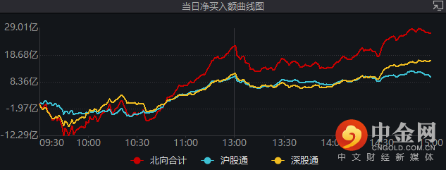 净买入额曲线图来看,北向资金延续早盘小幅流出,尾盘再现流入的局面。沪股通净流入10.12亿,深股通净流入16.82亿。