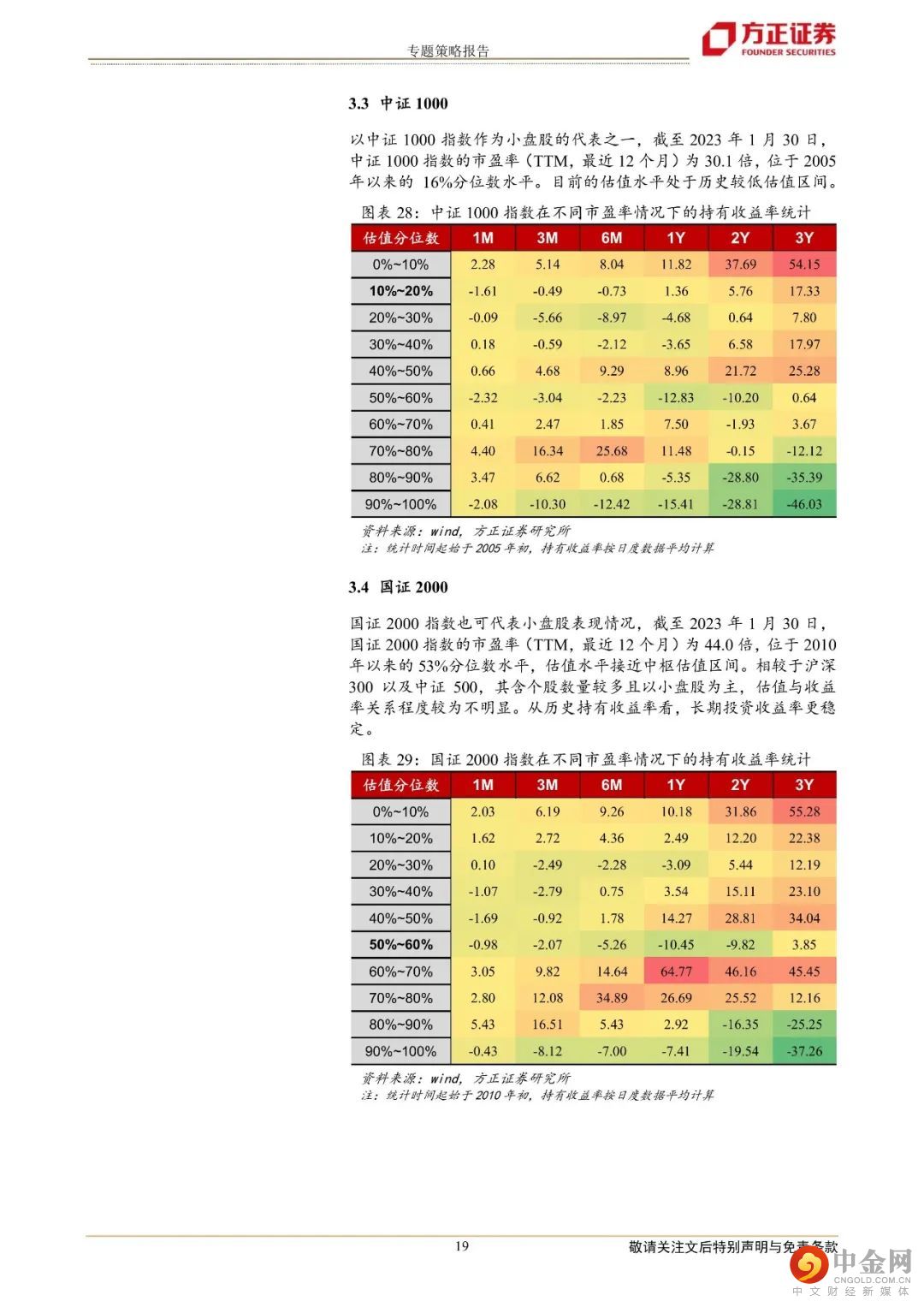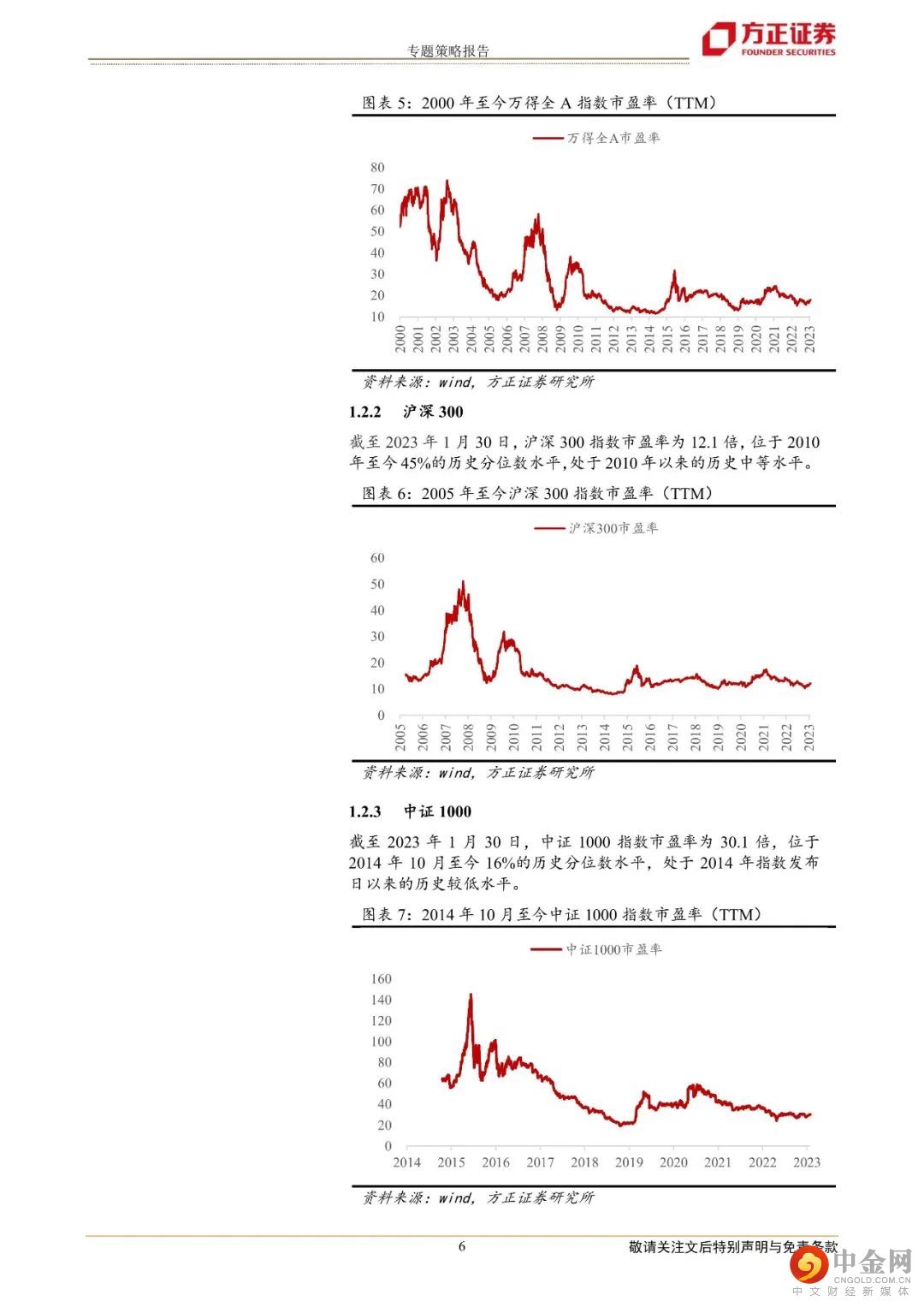 从主要指数估值看,截至2023年1月30日,全部A股市盈率(TTM)为17.9倍,位于2010年至今51%的历史分位数水平。代表小盘股的中证1000指数市盈率为30.1倍,位于2014年10月指数发布日以来的16%的历史分位数水平。过去一个月主要宽基指数均呈现出估值快速向上修复态势,但没有指数估值明显偏高。