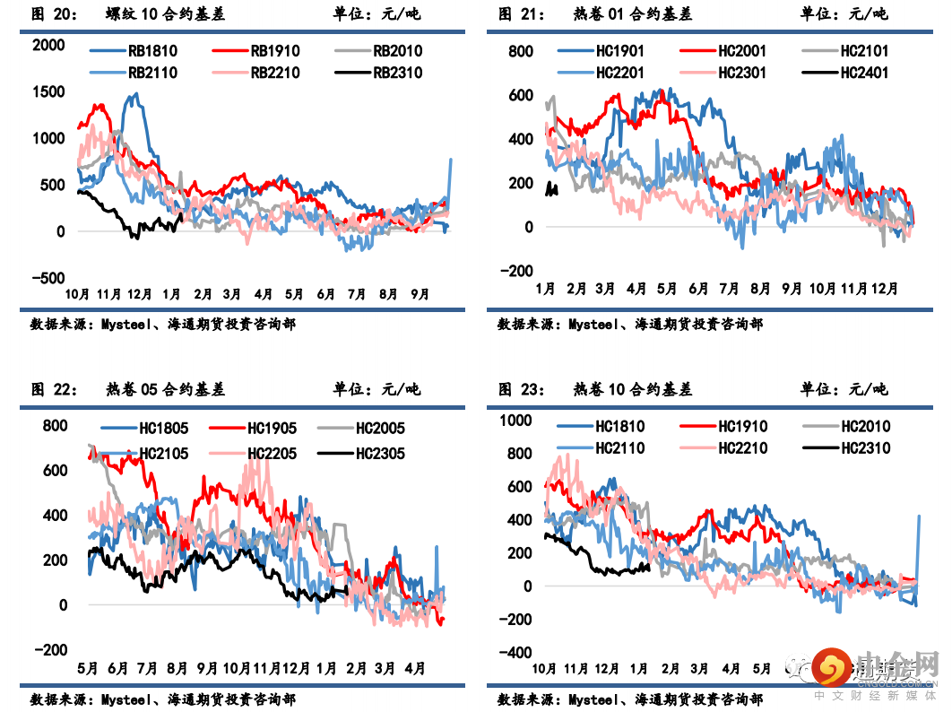 热卷 01 合约基差从 203 缩小至 149 元/吨,热卷 05 合约基差从 79