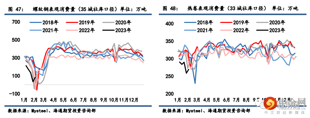 螺纹钢测算周度表观消费量环比增加 50.19 万吨至 82.95 万吨,表需同比增速降至-247.94%。