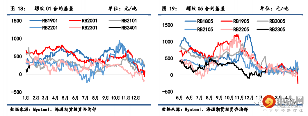 螺纹 01 合约基差从 70 扩大至 172 元/吨,螺纹 05 合约基差从-39 扩大至 75 元/吨,螺纹 10 合