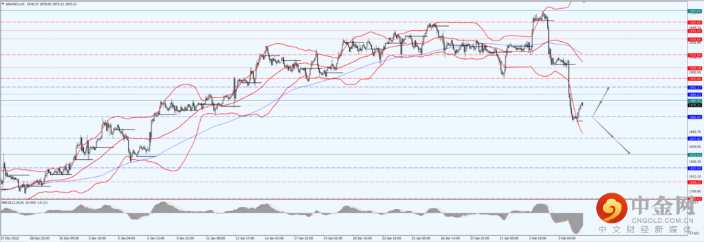 如果金价运行于 1866 一线下方,届时则关注 1847 和 1832 两个位置的支撑力度;