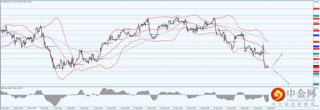 如果油价运行于 73.52 一线下方,届时关注 72.37 和 70.49 两个位置的支撑力度。
