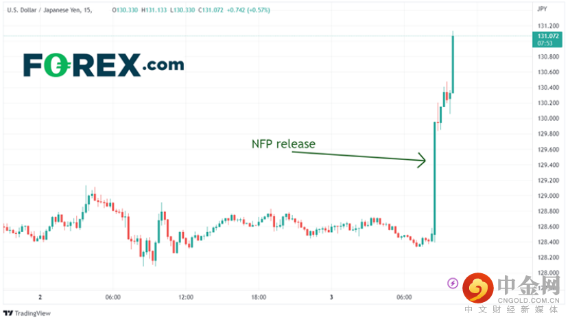 美元/日元在强劲的就业报告和ISM非制造业PMI报告接连发布后从低点跳涨300点。