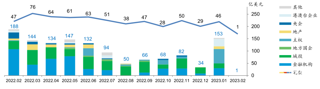 一级市场新发行方面,新年伊始,中资离岸债券市场发行十分清淡。华夏幸福基业股份有限公司的境外美元债(面额总额为49.6亿美元)完成债券重组及交割。本次重组具有里程碑意义,不仅是近年来中资企业最大规模的境外协议重组成功案例,也是目前中资企业境外债务重组中唯一一例成功实现以股抵债的重组交易