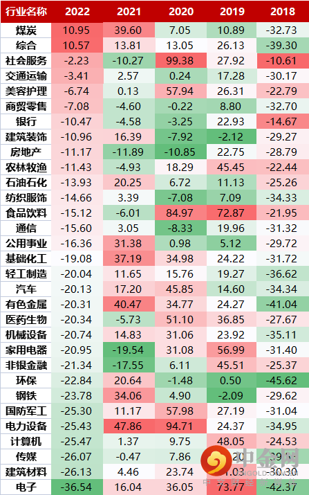 A股行业轮动特征较为明显,选取申万一级行业,回顾过去近五年各行业涨跌幅情况,可以发现没有一个行业能够保持连续胜出。更多的情况是,某些表现很好的行业在未来一到两年可能出现回落,而表现不好的行业在未来一到两年可能重新受到资金的青睐。