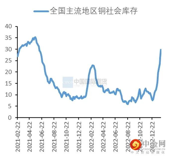 沪铜在1月走出触底反弹行情。沪铜自1月初下探至63850元/吨之后,在超强预期主导下,展开强势反弹行情,期价创下2022年6月中旬以来的新高,主力合约期价最高上摸至71500元/吨。一方面,美国非制造业PMI数据的公布令市场预期美联储会放缓加息步调。另一方面,在中国逐步放开疫情防控措施的同时,宏观利好政策逐渐落地,进一步助推了铜价上涨。随着节后国内铜市场累库压力显现,沪铜在1月末运行重心小幅回落。