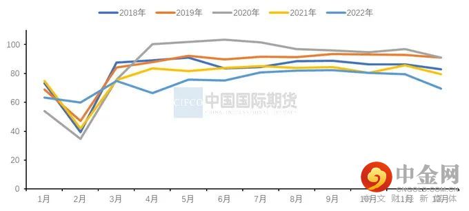 图3-2:国内电线电缆开工率情况 单位:%