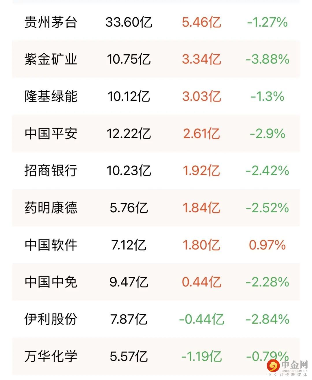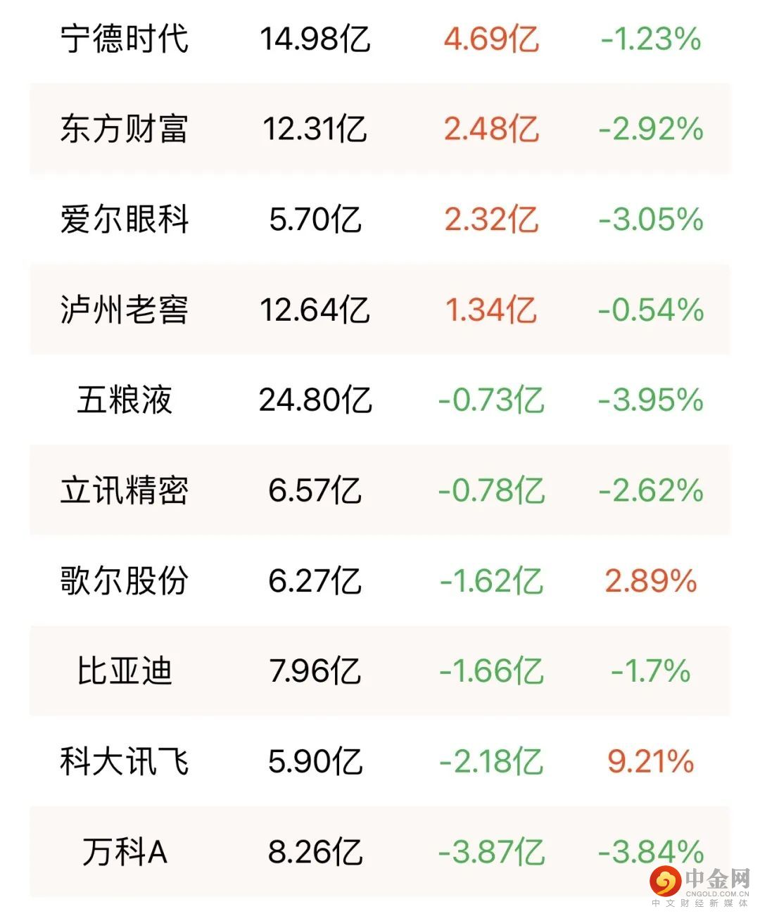 北向资金净卖出5.43亿元。万科A、科大讯飞、比亚迪分别遭净卖出3.87亿元、2.18亿元、1.66亿元;贵州茅台逆势获净买入5.46亿元。