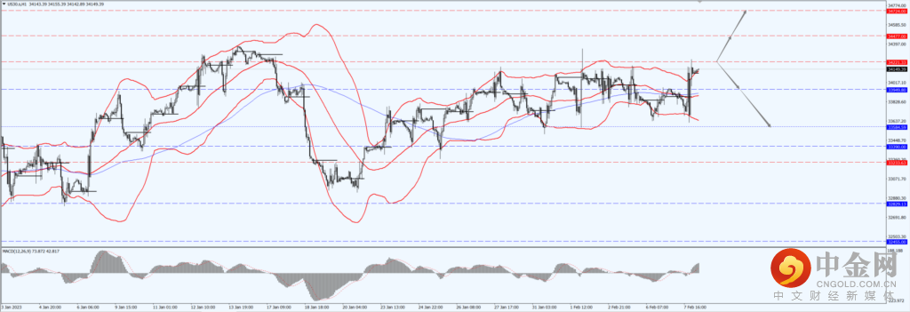 如果道指稳定运行于 34221 一线下方,届时关注 33949 和 33584 两个位置的支撑力度。