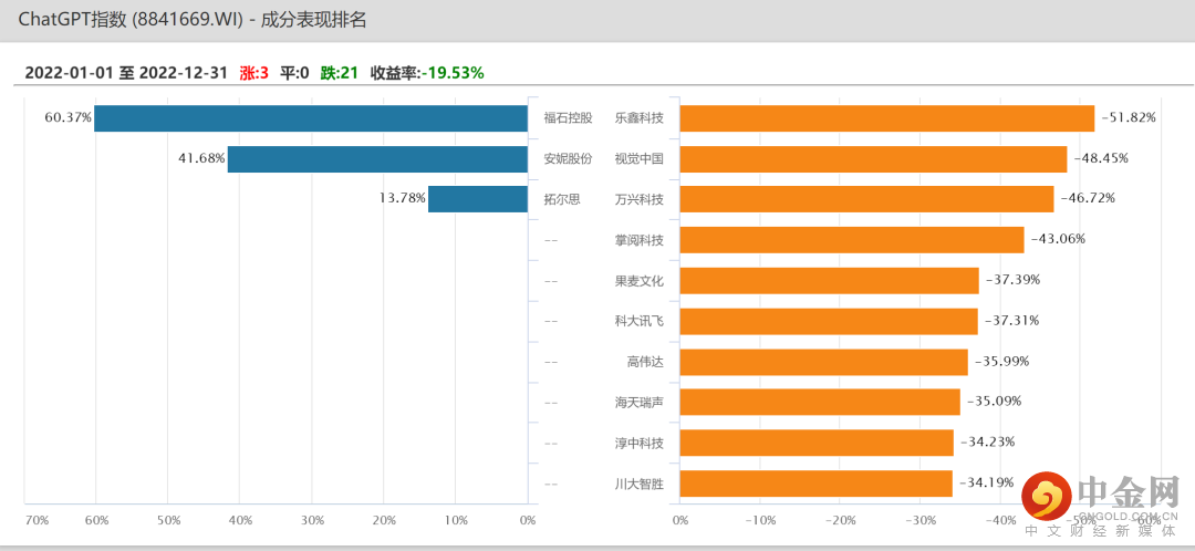 不过,投资者需要关注的是,A股ChatGPT概念公司2022年业绩多数表现不佳。