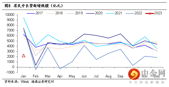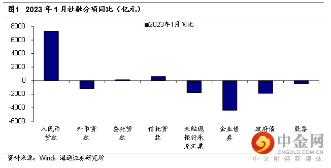 另外,值得注意的是,自2023年1月起,人民银行将消费金融公司、理财公司和金融资产投资公司等三类银行业非存款类金融机构纳入金融统计范围。2023年1月末,上述三类机构对实体经济发放的人民币贷款余额8410亿元,影响相对有限。