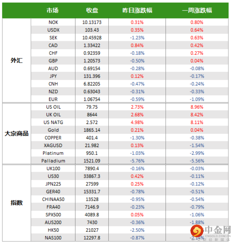 上周市场缺乏“爆点”,美联储委员的鹰派言论和此前基调基本一致,令投资者增加了对未来两次会议继续加息的押注。各期限美债收益率显著升高,带动美元指数连续第二周收上涨。本周二的美国CPI预计会进一步回落至6.2%,但分项权重调整可能会产生一些影响。若预期落空,或回落幅度不足以令加息预期降温,美元有望延续反弹势头。