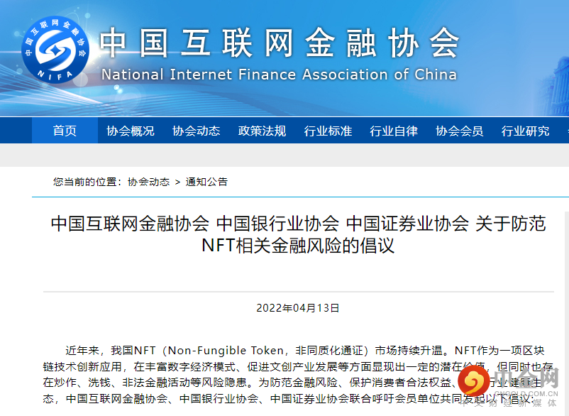 4月13日,中国互联网金融协会、中国银行业协会、中国证券业协会发布《关于防范NFT相关金融风险的倡议》指出,近年来,我国NFT(Non-Fungible Token,非同质化通证)市场持续升温。NFT作为一项区块链技术创新应用,在丰富数字经济模式、促进文创产业发展等方面显现出一定的潜在价值,但同时也存在炒作、洗钱、非法金融活动等风险隐患。为防范金融风险、保护消费者合法权益、维护行业健康生态,中国互联网金融协会、中国银行业协会、中国证券业协会联合呼吁会员单位共同发起以下倡议: